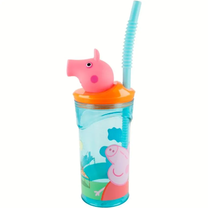 Bonito Vaso reutilizable Peppa Pig en 3D, con pajita y tapa, para poder disfrutar de tus bebidas favoritas. Producto libre de BPA.