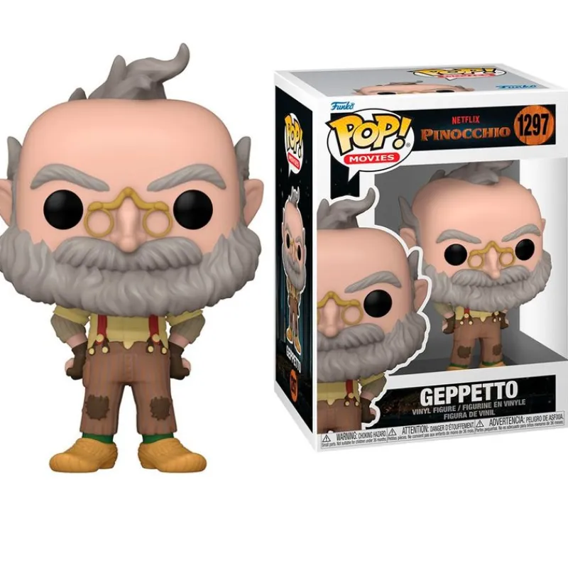 Figura fabricada en vinilo de la colección Funko POP con número 1297, inspirado en el personaje de Geppetto de la película de animación de Netflix.