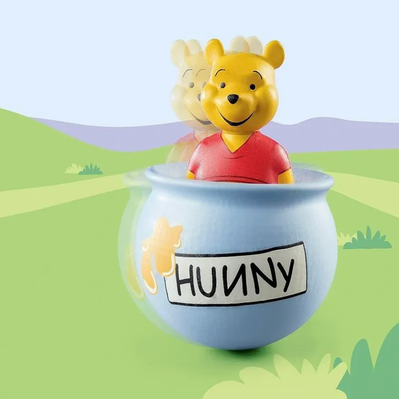 Tarro de Miel de la colección Playmobil 1.2.3 inspirada en la serie de animación Winnie the Pooh. Entrena las habilidades motoras finas al colocar la figura en el tarro y haz girar el tarro. Recomendado a partir de 1 año.