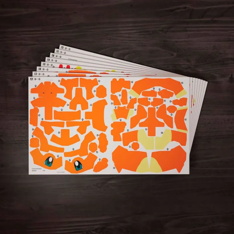 Maqueta de Pokémon con una icónica silueta y color, detalles auténticos, postura de batalla y base de efecto fuego.