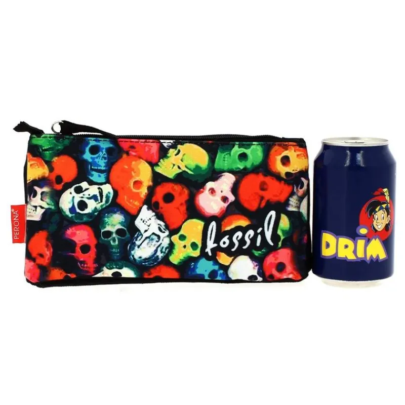 Portatodo triple fabricado en poliéster y con un extremado diseño de calaveras de diferentes colores estampadas. Dispone de 3 espacios en los que podrás guardar y almacenar como quieras los pequeños objetos de tu material escolar (lápices, bolígrafos…). Tiene unas dimensiones de 12 cm de alto x 23 cm de largo x 3.5 cm de ancho aproximadamente. En nuestra web también encontrarás la mochila a juego (Ref 54880 – Se vende por separado).