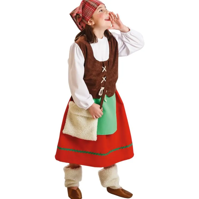 ¡Prepárate para celebrar la navidad! Disfraz de Pastora compuesto de cuerpo con mangas, falda, pañuelo, calzas y zurrón. NO incluye calzado. Talla 6-7 años aproximadamente (Espalda: 32 cm Pecho: 72 cm Cintura: 68 cm Manga: 41 cm Largo Pantalón: 70 cm).