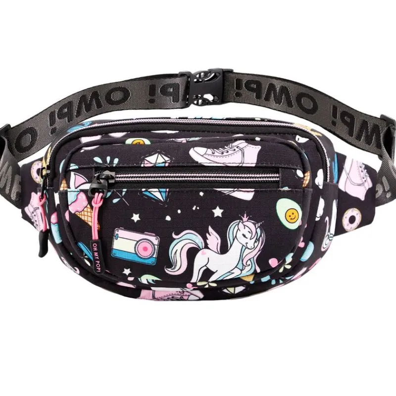 Bolsa riñonera con compartimento principal único y bolsillo frontal. Su correa es ajustable a la cintura de 120 cm. Su dimensiones son de 22 cm x 13 cm x 7 cm aproximadamente.