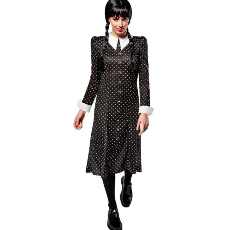Vestido impreso digitalmente con el que podrás convertirte en Miércoles Addams. NO contiene peluca, medias ni calzado.
