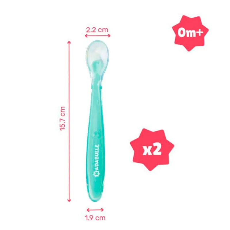 Set de 2 cucharas de silicona blanda para las primeras comidas de tu bebe