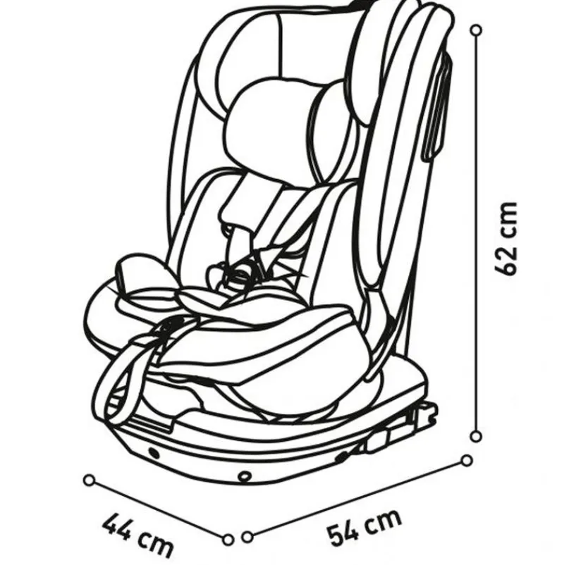 Silla de coche Panafix Isize desde los 40 hasta los 150cm que tiene con top tether en la barra antivuelco, giratoria 360º para poder colocar al bebé cómodamente.