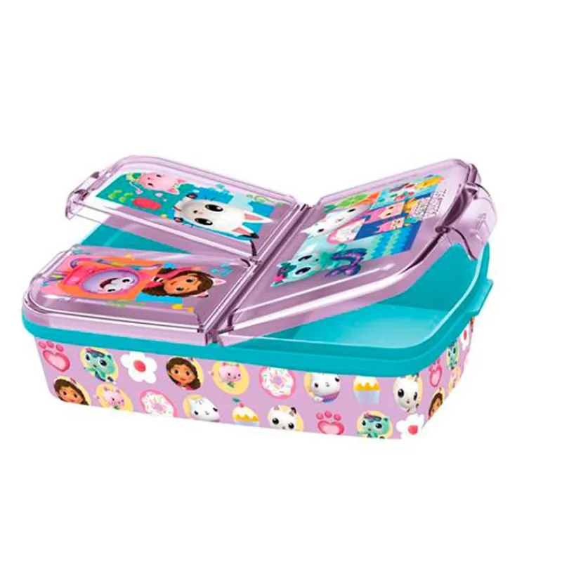 Decorada con divertidos diseños basados en los personajes de la serie La Casa de Gabby, hará que los peques estén encantados de llevársela allá donde vayan. También la pueden utilizar para guardar y transportar sus pequeños juguetes. Con varios compartimentos Material resistente Decoración en tapa Libre de BPA
