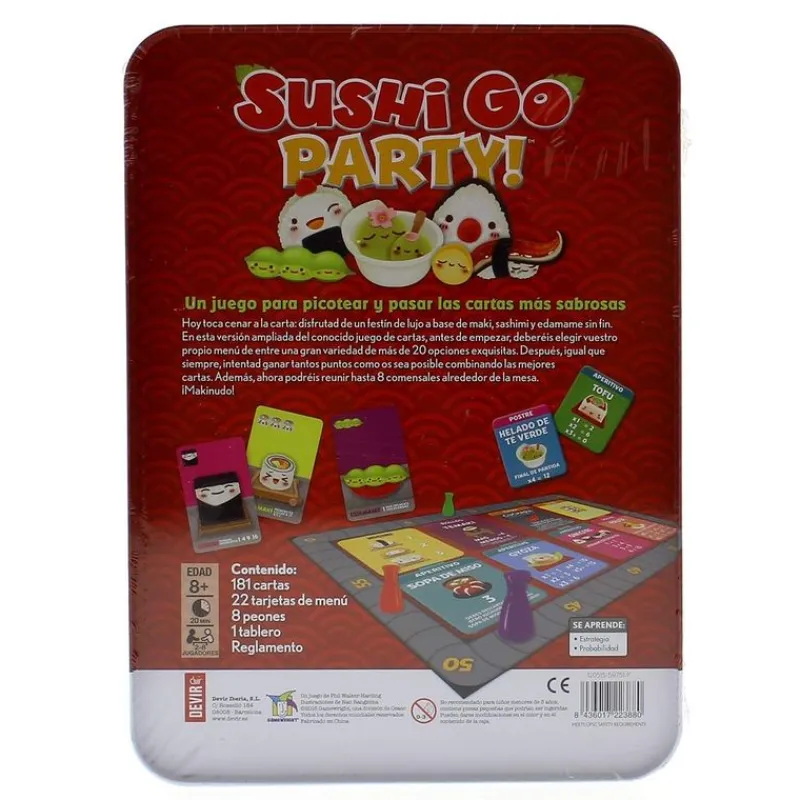 Sushi GO! Party es un divertido juego de cartas en el que el objetivo principal del juego es conseguir el menú con más puntos.