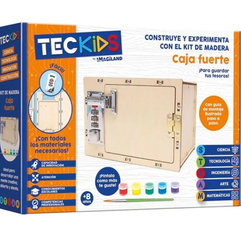 Emocionante conjunto que incluye todo lo necesario para construir tu propia caja fuerte de madera.