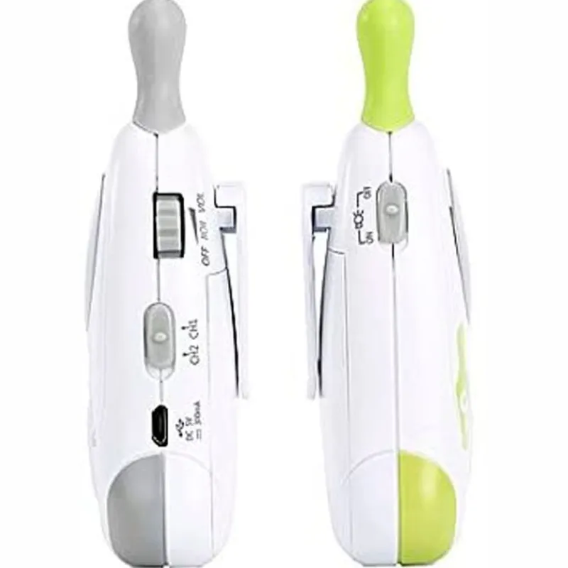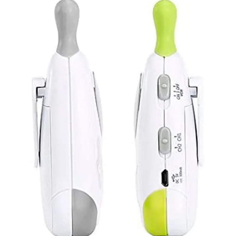 Vigilabebé con baja potencia de emisión y alcance de 300 metros. Función de lámpara veladora. Modo VOX (activación por voz) o modo continuo. Alarma sonora y visual y alarma fuera de alcance. Analógico con 2 canales seleccionables. Con cargador incluido. Recomendado a partir de 0 meses.