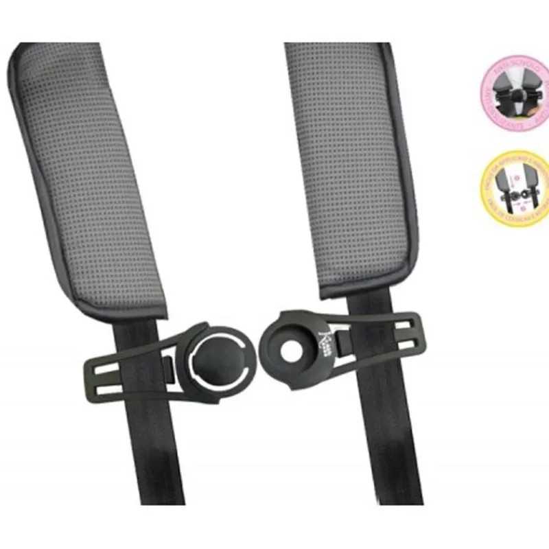 El agrupador de arnés es recomendado para mejorar la seguridad en las sillas de auto Su función principal es mantener los arneses del asiento en la posición correcta, evitando que se deslicen o caigan, y cerrar el espacio entre los cinturones de seguridad a la altura del pecho o cuello del bebé. Esto ayuda a reducir la separación entre los arneses, evitando que el niño pueda deslizarse o liberarse accidentalmente de los sistemas de sujeción.