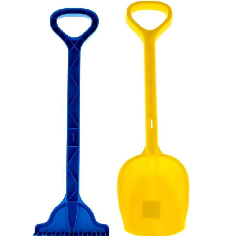 Conjunto de pala más rastrillo de gran tamaño ideal para jugar en el parque o en la playa. Los dos accesorios son de plástico resistente y miden, aproximadamente, 56 cm de largo.