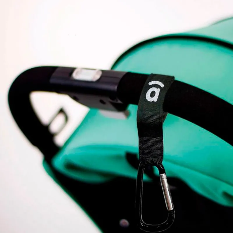 Set de 2 mosquetones ideal para poder colgar las bolsas de la compra, mochilitas..Se adaptan a cualquier manillar de silla o carro gracias a su cierre de velcro.
