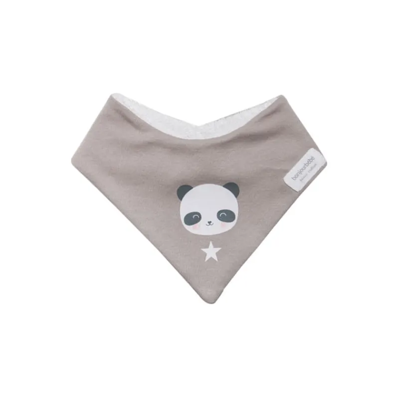 Los baberos bandanas tienen la forma de un pañuelo doblado por la mitad, haciendo la forma de un triángulo. Estos, suelen estar fabricados en algodón y se atan con una lazada al cuello o con un corchete, quedando el cuello del bebé más recogido.