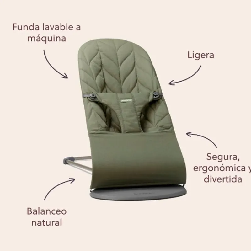 Hamaca Bliss desde el nacimiento hasta los 2 años que dispone de balanceo natural sin necesidad de cables y pilas, con el movimiento de tu bebé se balanceará solo.