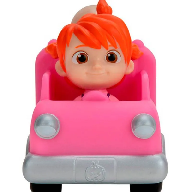 Vehículo con ruedas giratorias inspirado en un personaje de la serie de animación Cocomelon.