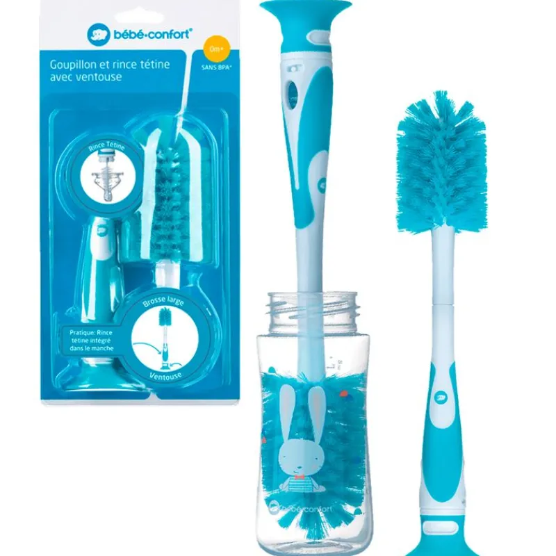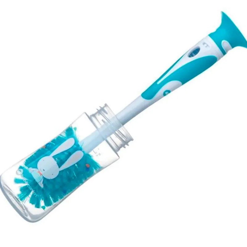 Limpia biberón 2 en 1 con ventosa y cepillo ancho con cerdas suaves para todo tipo de biberones y tetinas.