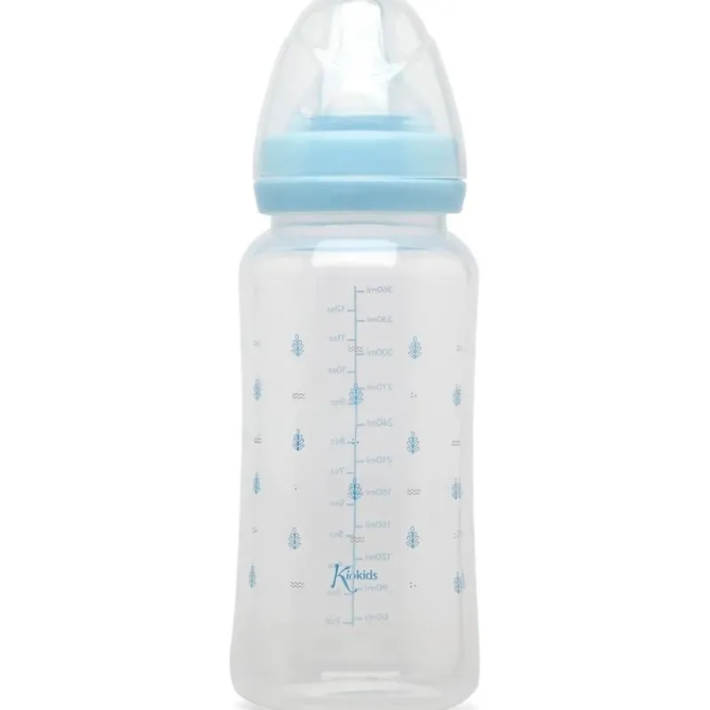 Biberón con capacidad de 360 ml. Dispone de un cuello ancho y una tetina de silicona con 3 posiciones: girando el biberón, regulas la intensidad de salida del líquido, siendo el 1 de flujo más lento y el 3 el más adecuado para líquidos más densos. Tiene sistema para ayudar a evitar cólicos y libre de BPA. Recomendado a partir de 6 meses.