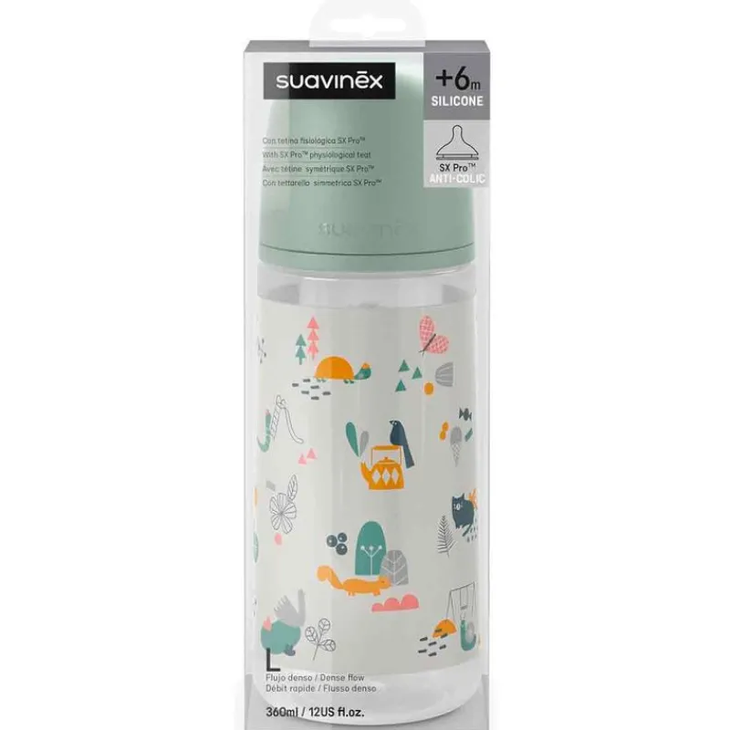 Biberón de 360ml con tetina fisiológica SX Pro de Silicona de Flujo denso y con válvula anti cólico. Para +6meses