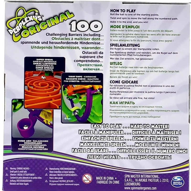 Perplexus es un juego laberinto en 3D donde cuya meta es que se mueva una canica alrededor de los obstáculos desafiantes dentro de una bola transparente.
