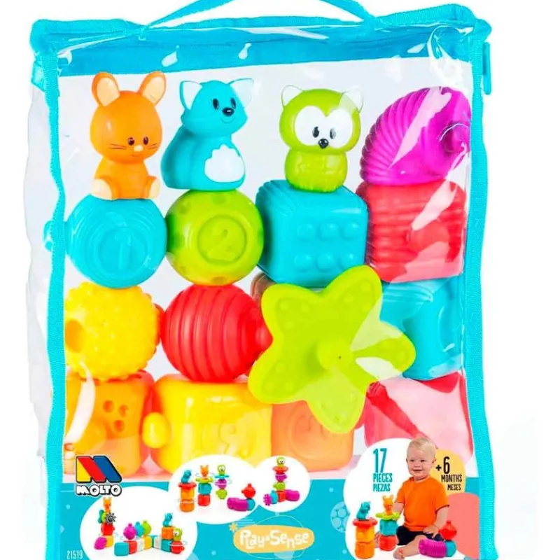 Pack que contiene 17 Bloques Sensoriales que despertarán la curiosidad de los más pequeños de la casa. Recomendado a partir de 6 meses.
