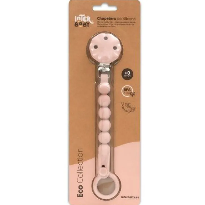 Cadena porta chupete de silicona que se adapta a los chupetes con anilla, y pinza para sujetar en la ropa.