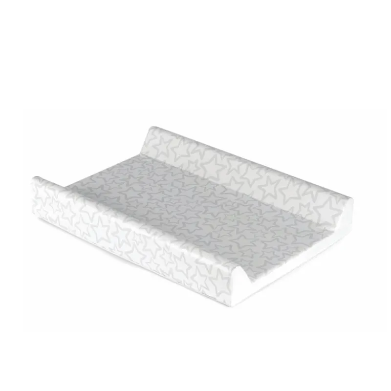Cambiador de espuma plastificado, con los laterales más altos para evitar que el niño se caiga. Muy fácil de lavar.