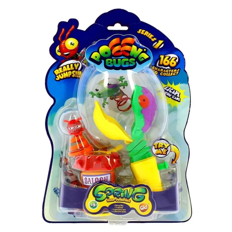 Lanza todos tus Poeengs al cielo y mientras están en el aire…¡captúralos con el caza Poeengs! Aprieta el botón del caza Poeengs cuando un Poeeng salte cerca y ¡ñam ñam! Cada blister incluye un Poeeng, un caza Poeengs, una casa y una carta. Hay 166 Poeengs diferentes…¡¡¡colecciónalos todos!!!