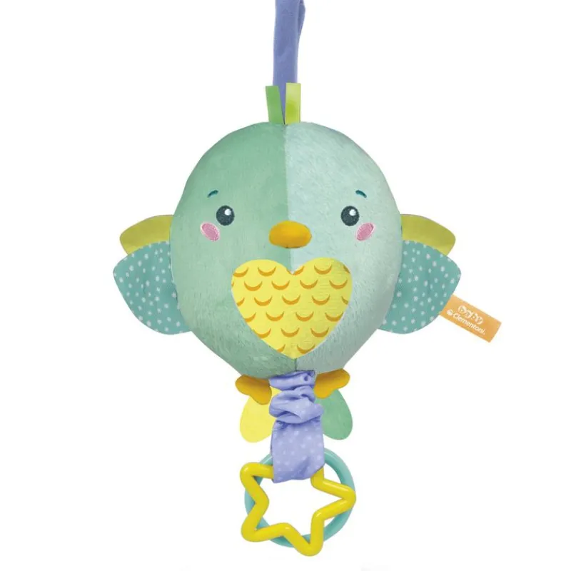 Equipado con una correa de velcro suave para colgarlo en la cuna o el cochecito.