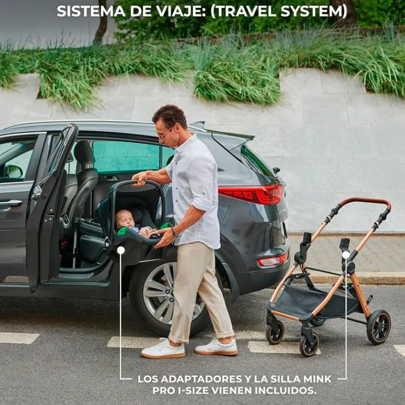 Esme en un cochecito 3 en 1 que su silla se convierte en capazo para poder ahorrar en espacio de almacenamiento conforme el bebé vaya creciendo.