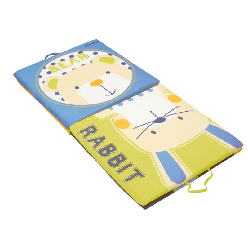De forma abierta :se transfoma en una fántástica alfombra de juegos cuadrada de gran tamaño ( 120×120)