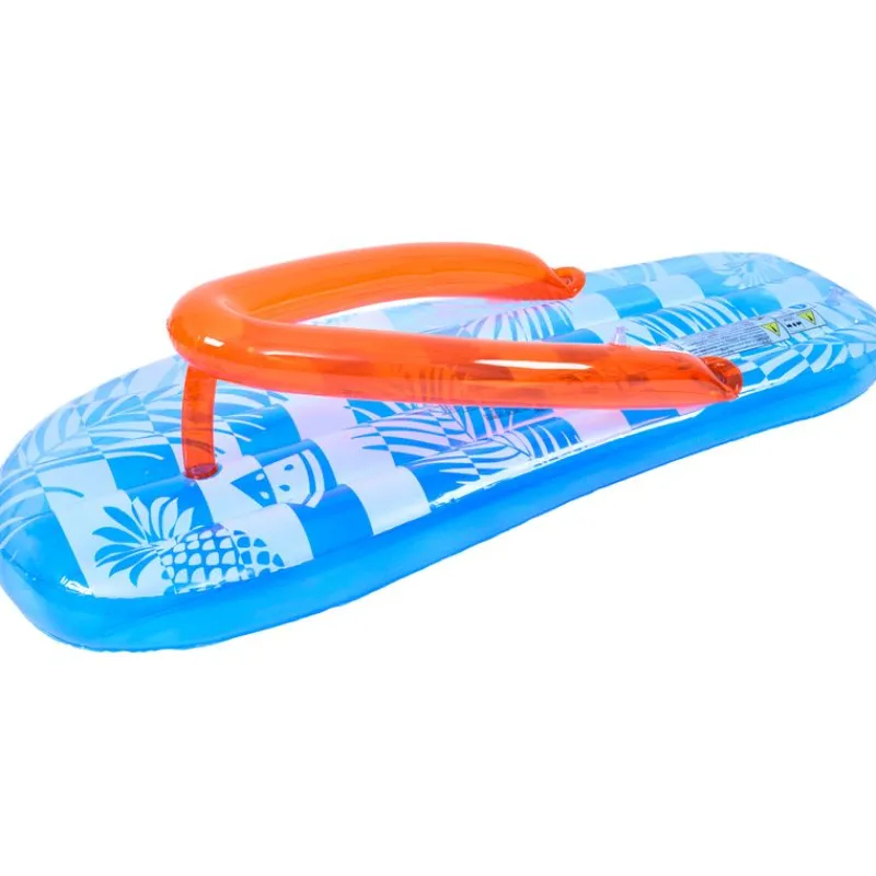 Disfruta del verano con esta divertida colchoneta en forma de chancla. Está fabricada en vinilo de alta calidad y dispone de dos cámaras de aire para mayor seguridad. Sus dimensiones son de 165 cm x 70 cm aproximadamente y soporta un peso máximo de 80 kg. Recomendado a partir de 14 años.