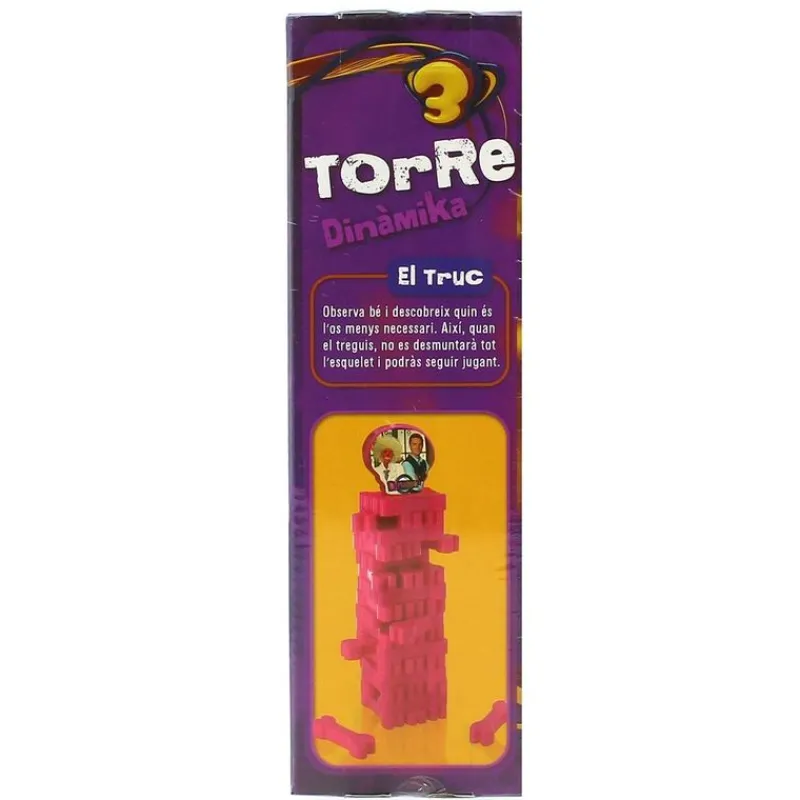 La Torre Dinámika es un divertido juego de habilidad, tanto física como mental, en el que tendrás que quitar los huesos de esqueleto de uno en uno sin desmontar la torre. Está fabricada en plástico y su altura es de 32 cm aproximadamente. Es beneficiosa para fomentar el razonamiento y la destreza manual. El producto está en catalán, ya que el programa pertenece a la cadena de televisión autonómica catalana TV3.