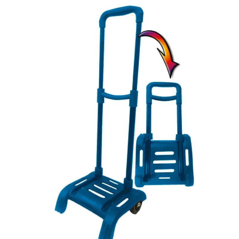 Carro plegable con una base grande y ruedas silenciosas. Base adaptable a cualquier tipo de mochila. Medidas aproximadas de la base: 28 x 28 cm.