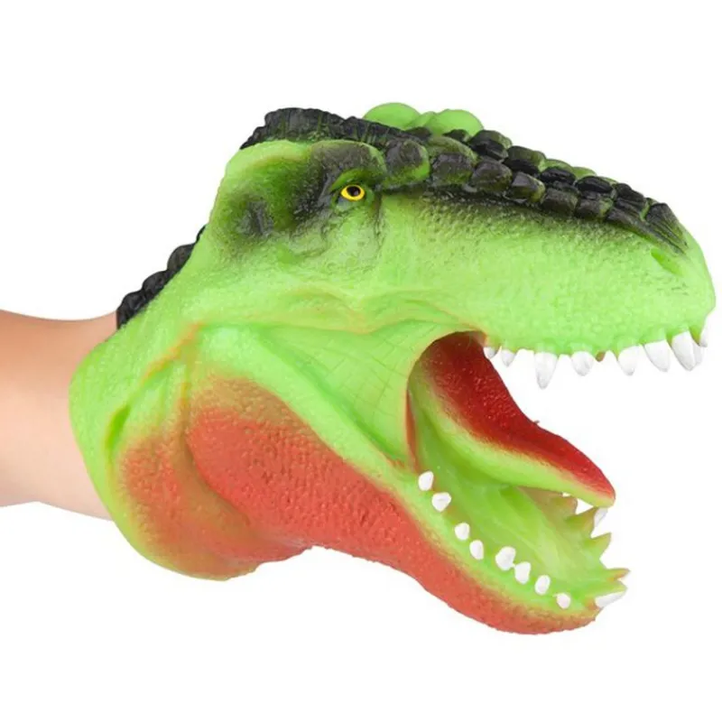 Títere en forma de dinosaurio de color verde, de la colección Dino World. Recomendado a partir de 3 años.