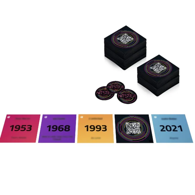 Juego interactivo de cartas donde escuchas más de 300 éxitos musicales de las décadas, ordénalos por orden cronológico en la línea de tiempo. El DJ elige una tarjeta y escanea el código QR, para reproducir la canción en Spotify. Coloca la tarjeta en tu línea del tiempo y si has acertado en tu línea del tiempo y si has acertado ¡Consérvala! Sé el primer jugador en ordenador correctamente 10 tarjetas y gana la partida. De 2 a 10 jugadores. Recomendado a partir de 16 años.
