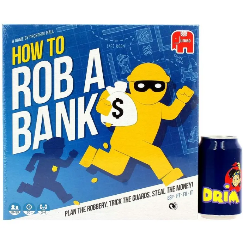 En este trepidante juego de mesa tendrás que unir fuerzas con los demás jugadores para acabar con los guardias del banco y conseguir el botín. El mapa de juego con 3 niveles cambiará en cada partida, los ladrones tendrán que ser hábiles para planear el robo y salirse con la suya. Tendréis que ser cuidadosos, ya que los guardias esconden trucos en la manga con los que podrán atraparlos y evitar el robo del banco.