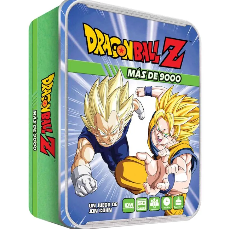 Más de 9000 es un juego de mesa inspirado en la serie de animación Dragon Ball. En este juego sus mejores luchadores se unen para ver quién es el más fuerte de todos. Un juego mirad faroleo, mitad deducción. Contiene 12 cartas de personaje, 6 cartas de referencia, 46 contadores y las instrucciones. De 3 a 6 años. Recomendado a partir de 12 años.