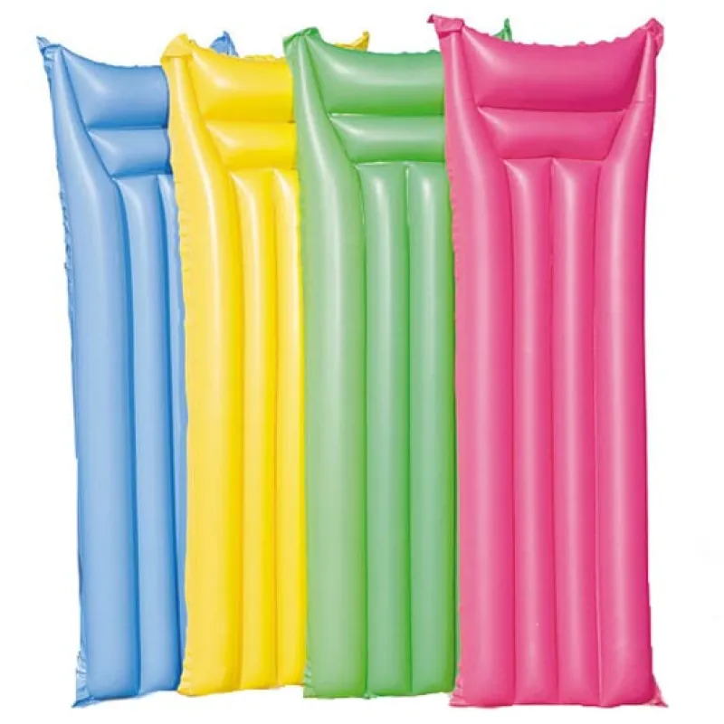 Colchoneta hinchable con válvula de seguridad. Ideal para la piscina. Hay varios colores. Medidas: 183 x 69 cm, aproximadamente.
