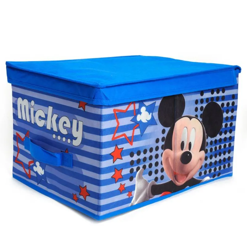 Surtido de baúles guarda juguetes de tela. Disponen de dos asas a cada lado para poder transportarlos más cómodamente. Hay varios modelos de los personajes más conocidos del cine: Cars, Aviones, Minnie, Mickey y Pincesas. Guarda tus juguetes, libros, objetos personales… todo lo que quieras bien recogido dentro de tu baúl. Dimensiones aproximadas: 30x40x25cm. SE VENDEN POR SEPARADO.