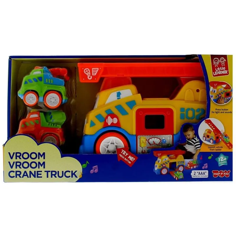 Camión grúa infantil con reproducción de luz y sonido.