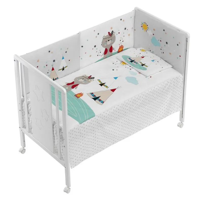Este conjunto de ropa de cuna de 3 piezas está diseñado especialmente para cunas de 60×120 cm. Fabricado con tejidos 100% algodón de alta calidad, proporciona a la habitación de tu bebé una sensación cálida, confortable y segura.