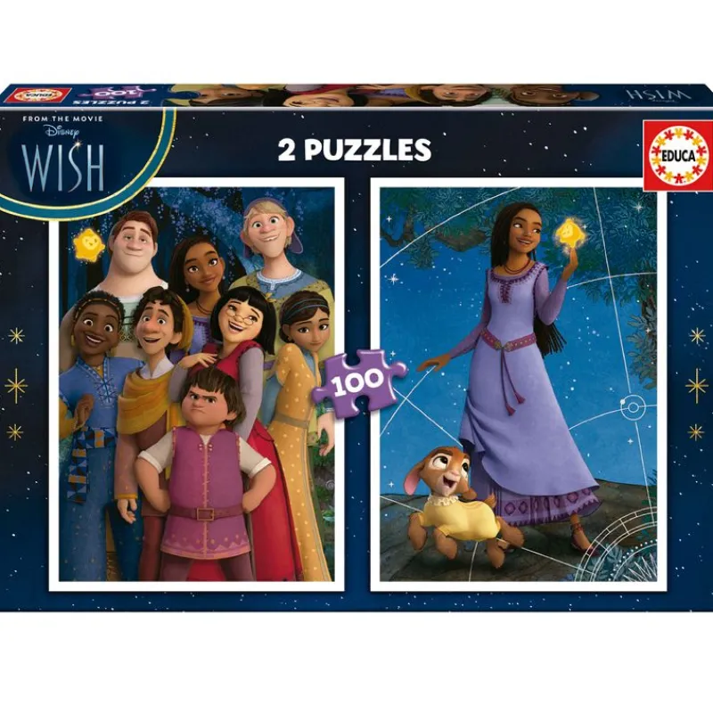 Pack en el que encontrarás 2 puzzles compuestos de 100 piezas con las que podrás construir imágenes inspiradas en la película de animación Wish.