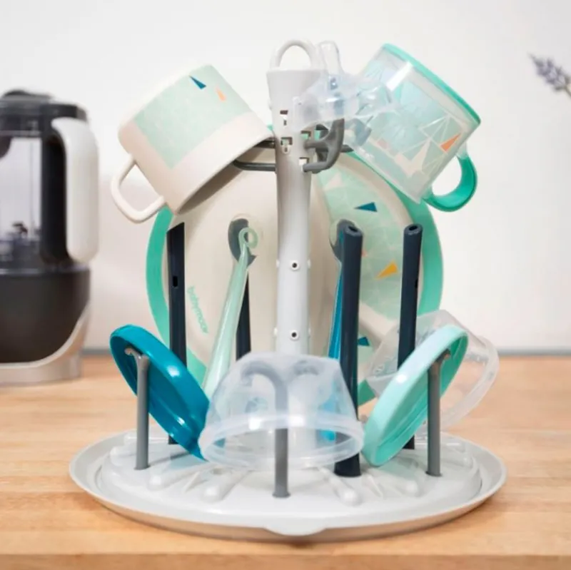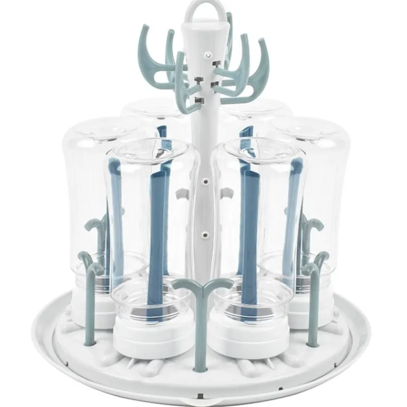Este escurridor te permite poner a secar todos los biberones, tetinas, chupetes y accesorios de lactancia de forma ordenada después del lavado o la esterilización. Tiene capacidad de hasta 6 biberones y accesorios, con brazos extraíbles para poder recolocar como mejor nos vaya.