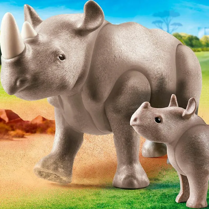 En el interior encontrarás un rinoceronte con patas articuladas, acompañado de su cría.