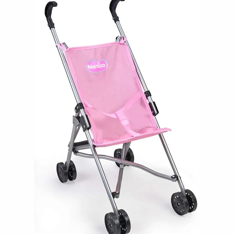 Sillita de metal plegable y muy ligera con cinturón ajustable. Ideal para sacar a pasear a tu Nenuco al parque. Para muñecos de hasta 42 cm.