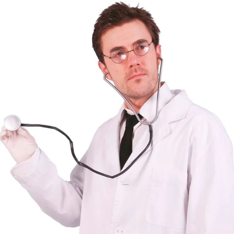 Fonendoscopio o Estetoscopio ¡Accesorio perfecto para completar tus disfraz de doctor@ o enfermer@! Mide 48 cm de largo aproximadamente, desde el oído hasta la parte final que se coloca en el pecho.