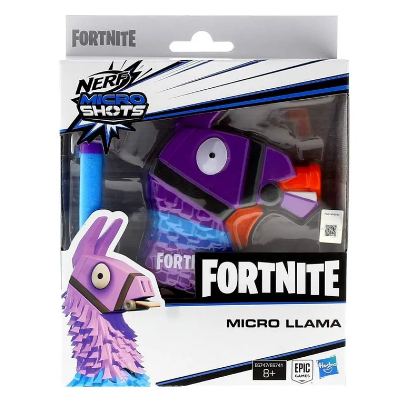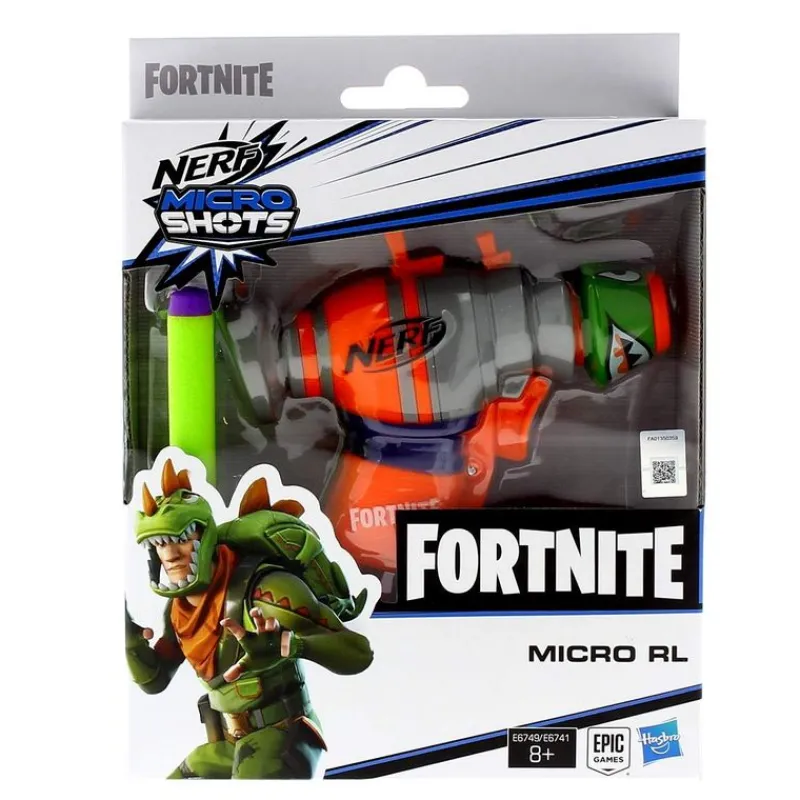 Pistola Nerf modelo microshots inspirada en el famoso videojuego Fortnite.