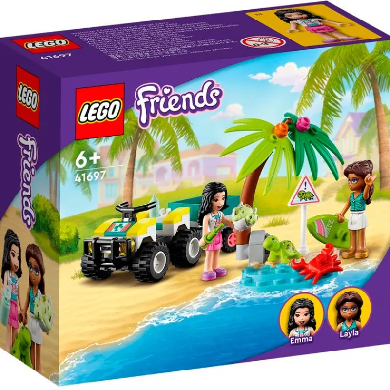 Pack de la colección LEGO Friends, compuesto de 90 piezas, con las que podrás construir el vehículo de salvamento de tortugas. Encontrarás un trocito de costa y mar, un vehículo todoterreno con remolque, una tabla de surf y las mini figuras de Emma y Layla. Recomendado a partir de 6 años.