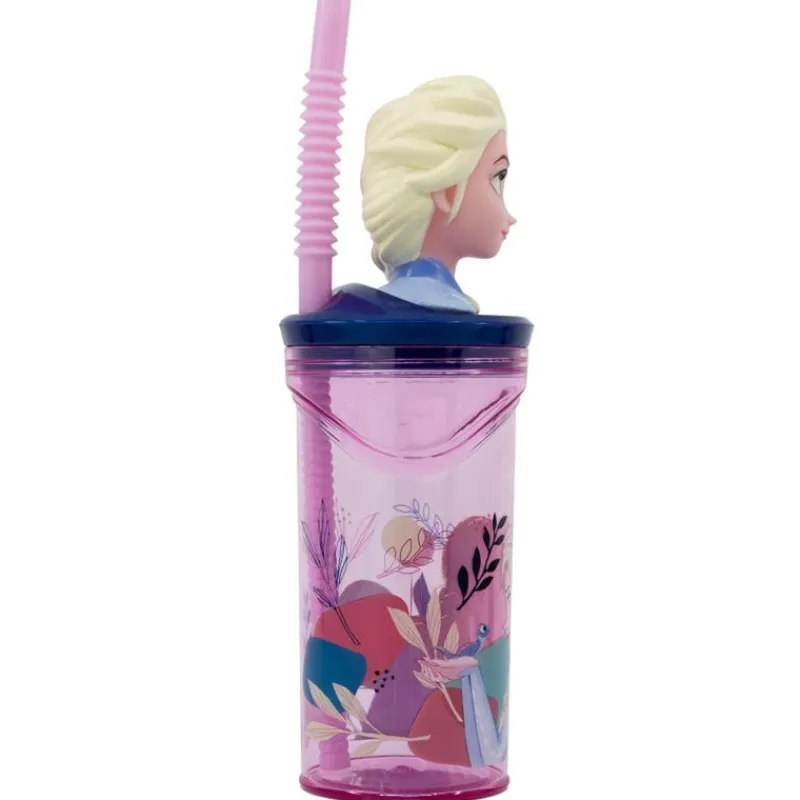 Bonito Vaso reutilizable del personaje de Frozen en 3D, con pajita y tapa, para poder disfrutar de tus bebidas favoritas. Producto libre de BPA.